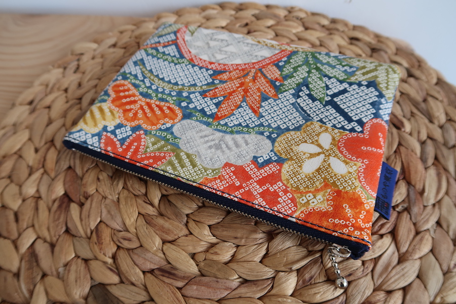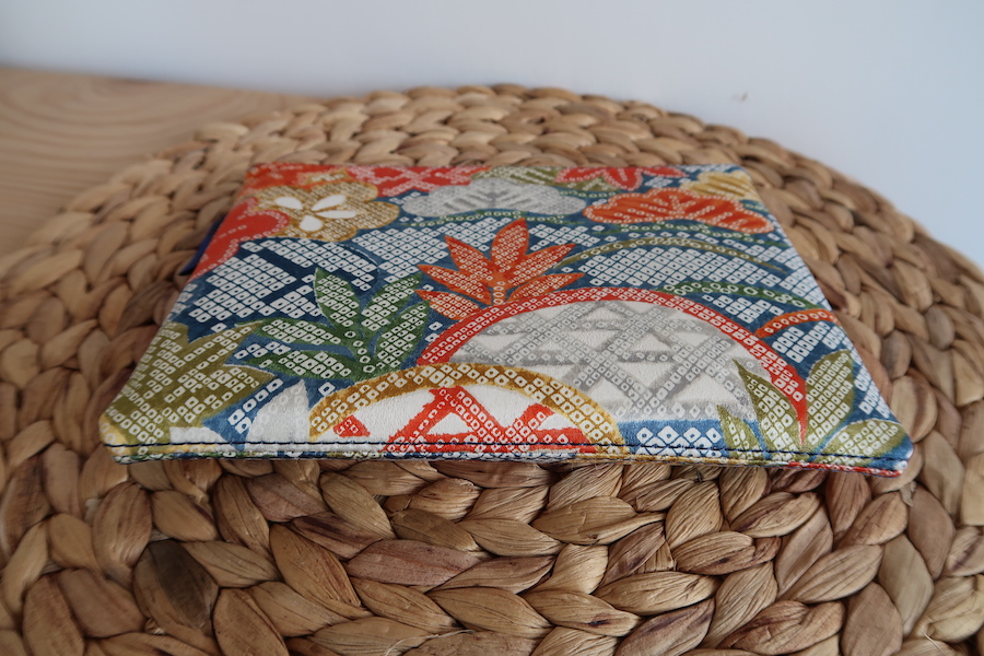 Pochette fine en kimono recyclé – Pins colorés