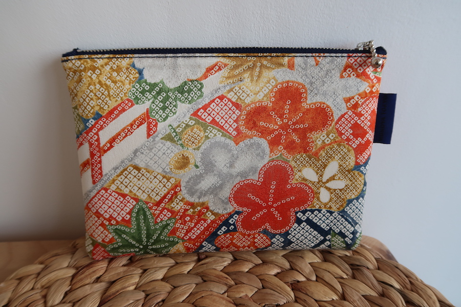 Cette pochette est non seulement un bel accessoire, mais également une pièce unique, réalisée à partir d’un kimono recyclé, mêlant tradition et modernité.